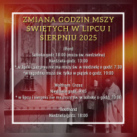 Zmiana godzin mszy świętych lipiec/sierpień 2025